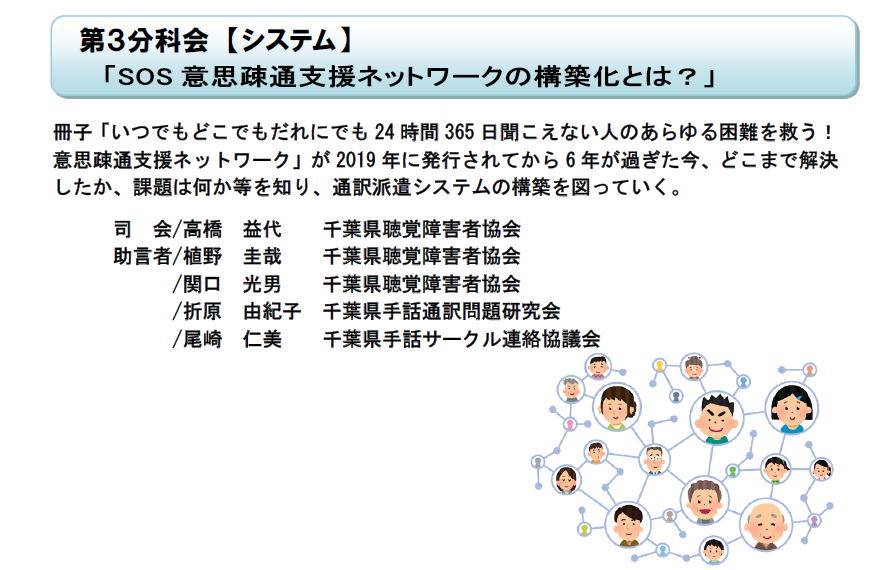 ★第1分科会「BCPで展開するとき市町村の連携とは?」 ★第2分科会「地域格差ってなに?」 ★第3分科会「SOS意思疎通支援ネットワークの構築化とは?」 ★第4分科会「県と市町村の連携による医療現場」 |