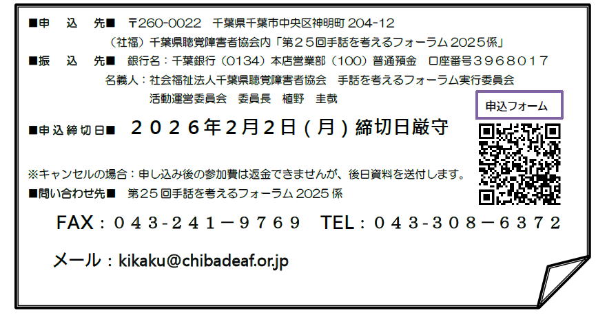 日時:令和8年 2月11日(水・祝) 10:20 ~ 16:30 会場:千葉県文化会館(小ホール等) 千葉県千葉市中央区市場町11番2号 (千葉城の隣) 総括テーマ:「『千葉ろう学校誕生の地』知ることで開く未来」 |