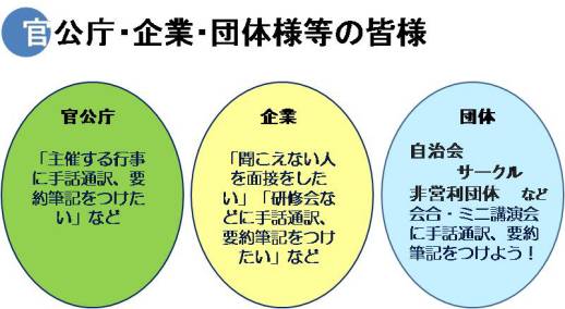 こんなときは、手話通訳・要約筆記(手書き・パソコン)派遣をご利用ください